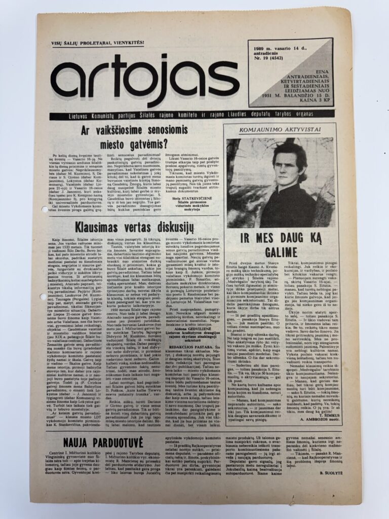 Tačiau 1989 metais, prasidėjus Tautiniam atgimimui, vietinėje spaudoje miestelėnai jau buvo kviečiami teikti pasiūlymus dėl gatvių pavadinimų. Tarp jų – nemažai pasiūlymų grąžinti senuosius vardus gatvėms.